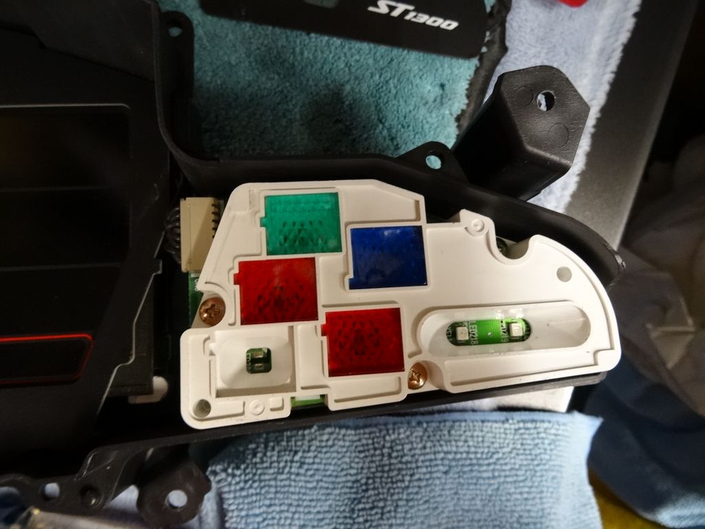 ST1300SpeedoRepair -- Carefully remove the idiot light cover. (Tabs holding in place usually break off).
